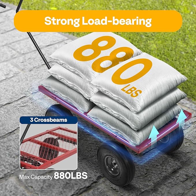 - FLEXIBLE HANDLES - The handles have a 180Β° turn design, so you can haul the cart in any direction freely and conveniently as you need; Its ergonomic design is comfortable for you to pull goods in an elegant way; It works well to turn your tiresome transports into one-time trips, showing excellent maneuverability even fully loaded