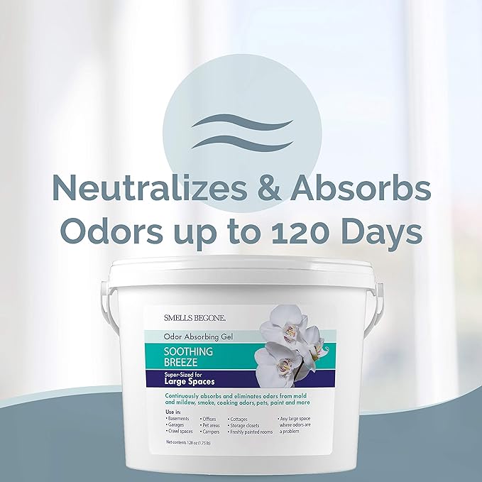 SMELLS BEGONE 1-Gallon Odor Absorber Gel - Air Freshener & Odor Eliminator for Homes, Garages & Commercial Buildings - Industrial Size - Soothing Breeze Scent