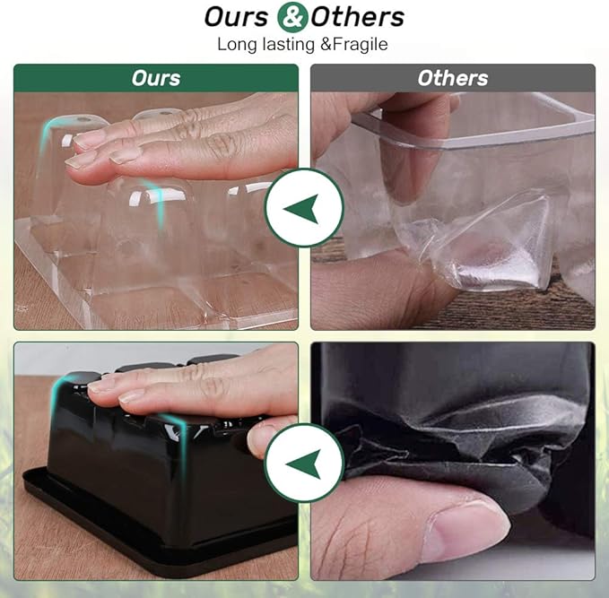 - Heat Mat Compatible: These seed trays are designed to withstand high and low temperatures, making them perfect for use with a heat mat without worrying about warping or melting.