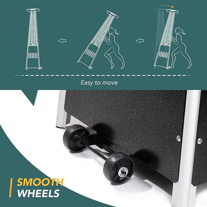 - Easy Mobility: Built-in wheels at the base make it simple to move the portable heater wherever you need outdoor heating. Perfect for patios, parties, backyards, gardens, decks, and restaurants, it adds both warmth and style.