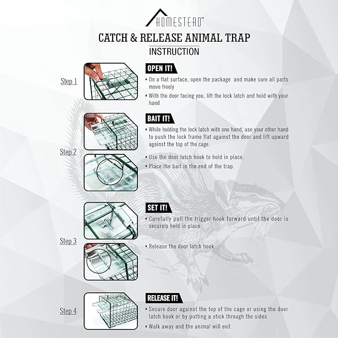 HOMESTEAD 32 Inch Live Animal Trap - Specialized for Raccoons, Opossums, Groundhogs, Skunks, Feral Cats, Squirrels - Humane Way Catch & Release Animal Trap