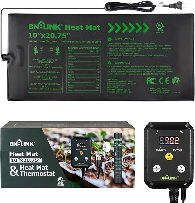 BN-LINK Seedling Heat Mat with Thermostat Controller Combo Set, 10" x 20.75" Plant Heating Mat for Seed Starting with Temperature Control for Indoor Growing, Plants Germination