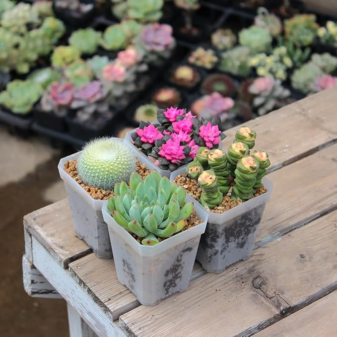 - Package includes 60pcs clear small square plastic plant pots, both available for indoor and outdoor application. Pot size in 2.70βW x 3.10βH, ** no saucers and plants included **
