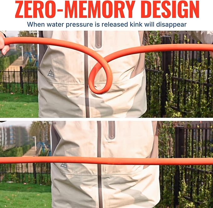 - Anti-Kink Technology - The fantastic flexible material allows the water hose to uncoil and lay flat as soon as first use and to snap back into shape to fight kinks as you drag it across the lawn, it features an industrial technology upgraded 360-degree swivel fitting, bringing your enhanced experience of kink resistance.