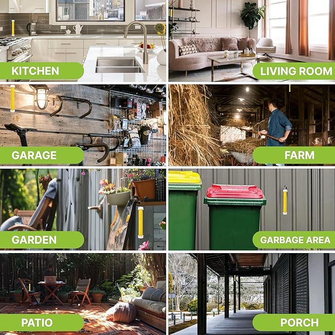 - THE GREAT OUTDOORS: Perfect for porches, garages, patios, gardens, stables, lawns, chicken coops, and hotspots for flying insects. Includes phorid fly trap pheromones, outdoor fly repellent, indoor fly catcher, hanging sticky fly traps, hanging sticky bug catchers, gnat traps outdoor, gnat sticky traps, fruit fly traps, flypaper rolls, fly paper, and fly trap sticky.