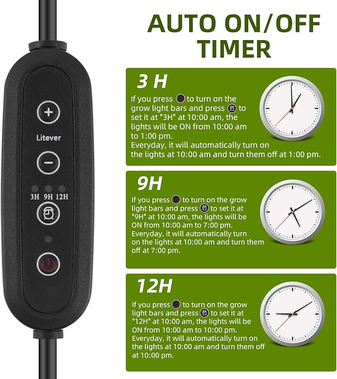 - 【Timer Included】Automatic ON-OFF. The timer included will turn on and off the plant grow light kit automatically every day.