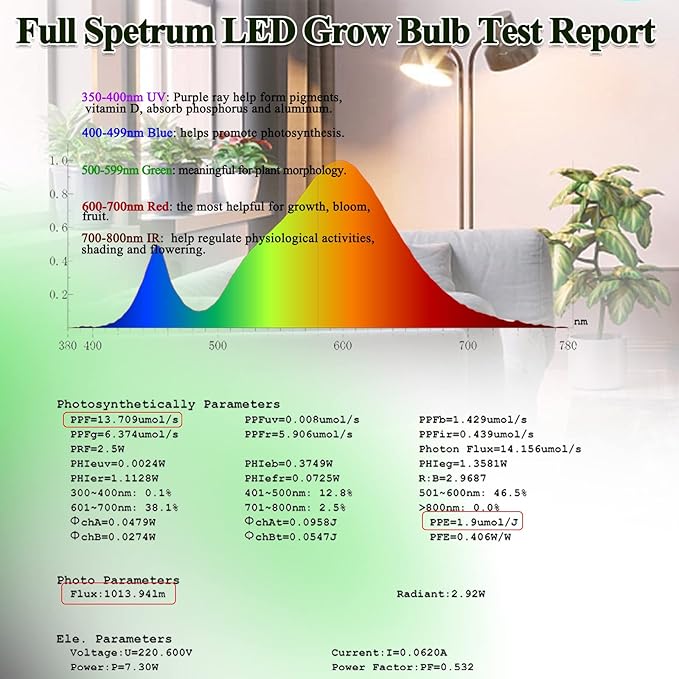 - 【ENERGY SAVING AND LOW HEAT PLANT GROW LIGHT BULB】 The MILYN grow LED plant light bulb for indoor plants, the heat sink is made of metal aluminum with finned heat sink design, generates low heat. Actual consuming of this led grow light bulb is only about 6.5watts, can replace 30W traditional HPS grow lamp, save more energy.