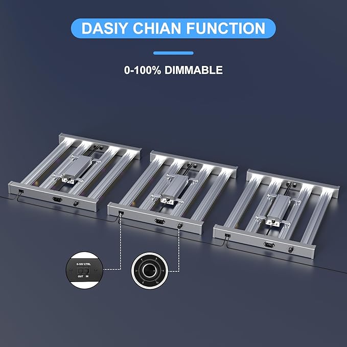 - DIMMABLE FULL SPECTRUM DESIGN- The intensity of light can be adjusted according to the needs of plants. Used with led new technology SMD leds, It contains 3000K(736PCS)+6500K(192PCS)+660nm(160PCS)+740nm(32PCS)+UV(32PCS) LEDs . Product Size- 23*17*2.3inches (58*44*6cm).