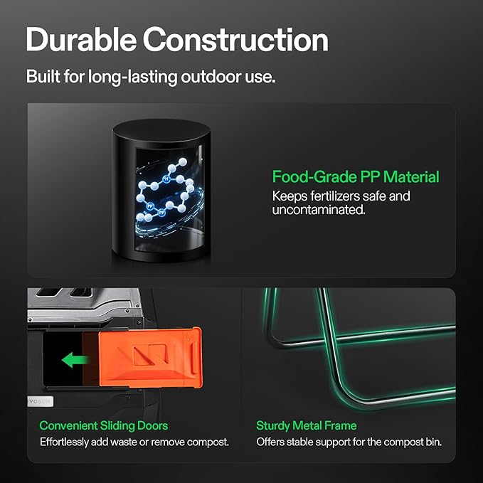 - Sturdy & Durable Construction: Constructed of premium metal frame and high-quality pp plastic body, this tumbling composter is corrosion-resistant, weathering-resistant, sturdy, and durable for long-lasting service life