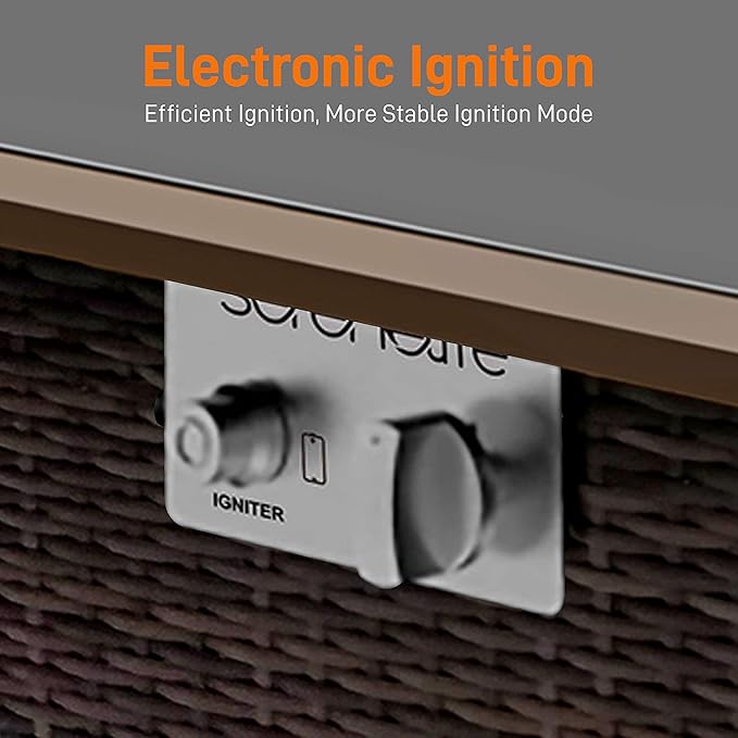 - ENVIRONMENT SAFE: Approved and safe patio fire pit propane bonfire table set can generate up to 50,000 BTU by using liquid propane fuel for stable and clean combustion so there is no ash or smoke to protect your health and the environment