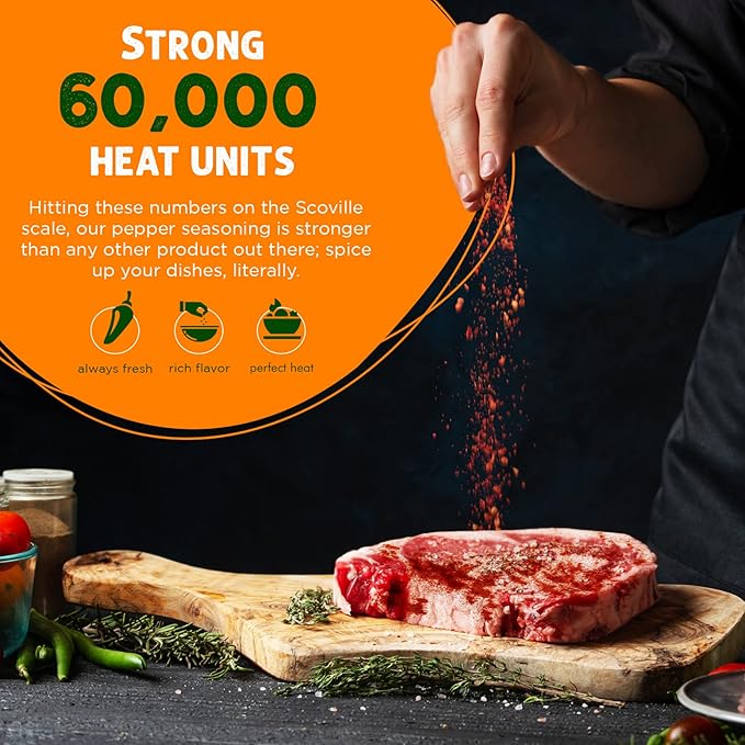 - 60,000 SHU CAYENNE PEPPER β ALWAYS PACKED FRESH IN THE USA: Every bit of our deliciously hot cayenne pepper is thoroughly dried and milled according to the highest quality standards to deliver a pure and potent flavor. Packed fresh right here in the USA and with a 60,000 heat unit, a dash of this hot pepper powder is just perfect for most stews, soups, salads, chilies, hummus and more.