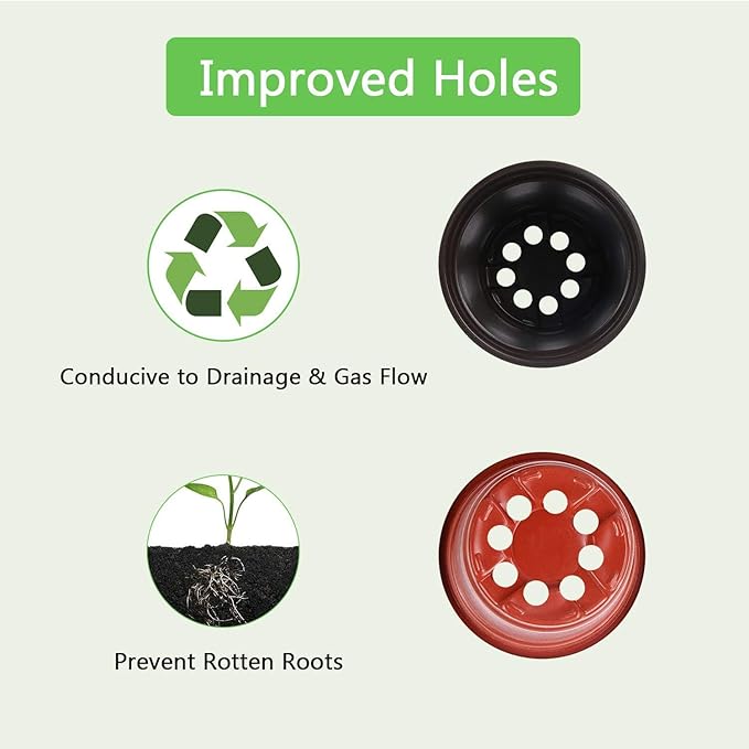 - Beautiful and Practicable: The plastic nursery pot is integrated with simple design, brick red exterior and dark interior, It's beautiful and practical