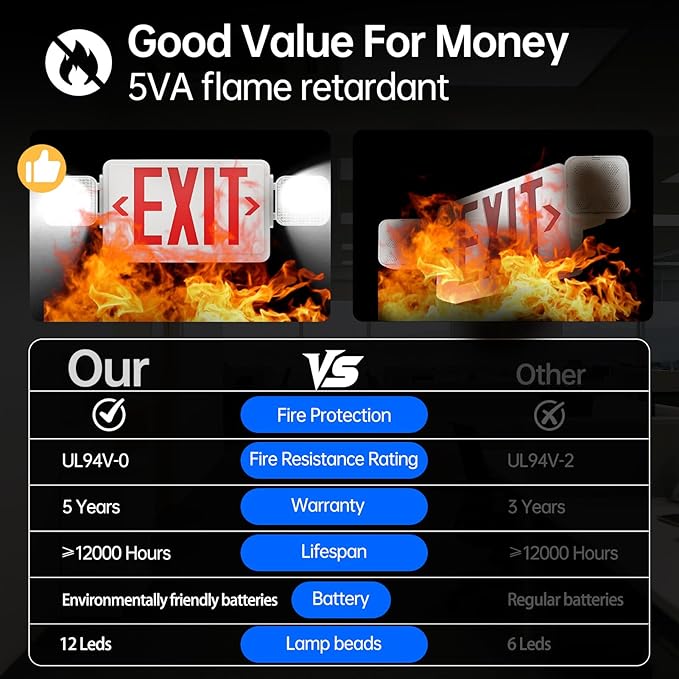 - 【US STANDARD】Red exit lighting to UL Listed, Meets all applicable requirements for UL-94-5VA flame rating , NFPA 101 (current Life Safety Code), NFPA 70 (NEC), FCC Title 47.