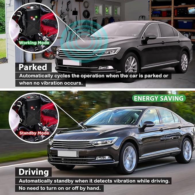 - Smart Energy-Saving Design: Equipped with intelligent auto standby mode that detects engine vibrations—automatically powers down while the vehicle is in motion, conserving battery life. A reliable rodent repeller for cars and trucks that works only when needed.