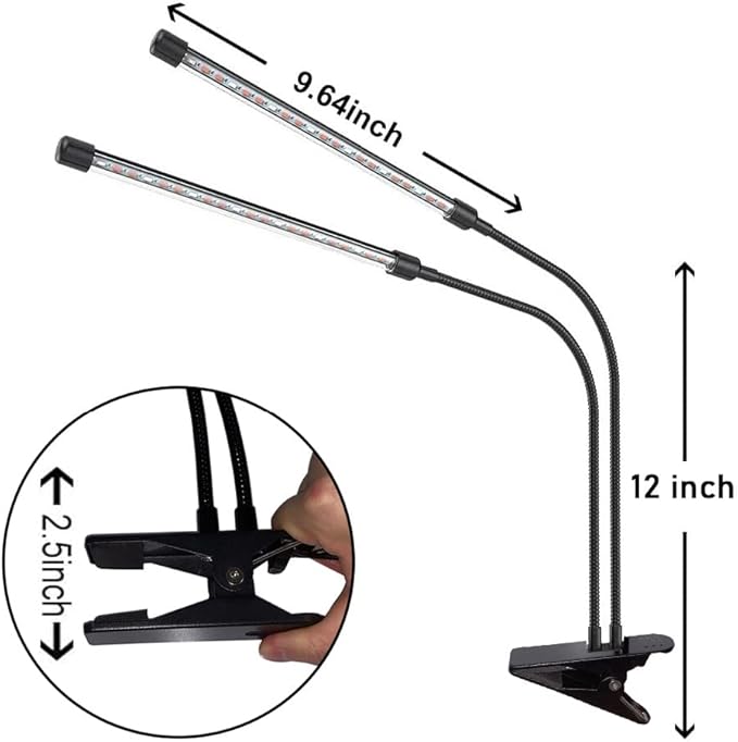 - ADJUSTABLE & LARGER ILLUMINATION AREA: The 2-head lamp with flexible arm which is easy to adjust the light in any direction, allows you to light your plants in 360-degree,which can enlarge the area of the effective lighting.
