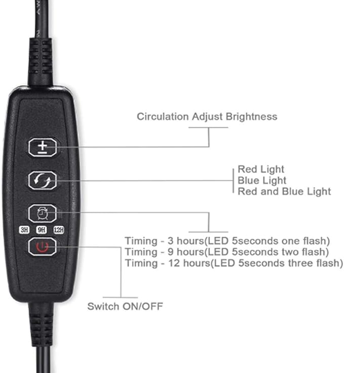- 3 LIGHTING MODES: This indoor plant grow light has 3 lighting modes: red light, blue light, red and blue light.The red light promotes photosynthesis, germination, bloom and fruit bearing. The blue light ensures the plants take in more energy through chlorophyll synthesis to help in germination. This professional grow lamp stimulates plant growth by multi-directional illumination.