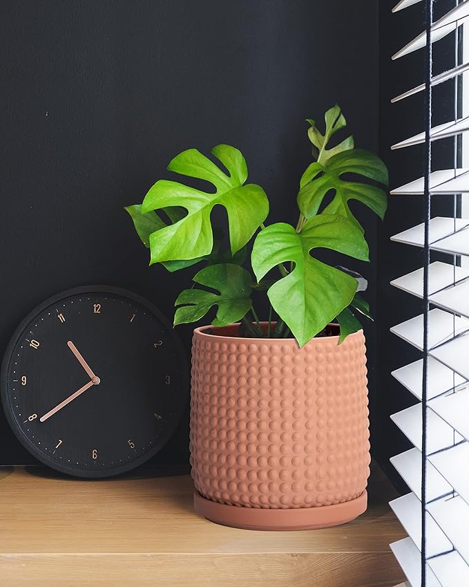 D'vine Dev 6 Inch Terracotta Beaded Planter Pot - Flower Pot with Drainage Hole and Saucer for Indoor Succulent Plants or Flowers, Terracotta, 27-C-X-7