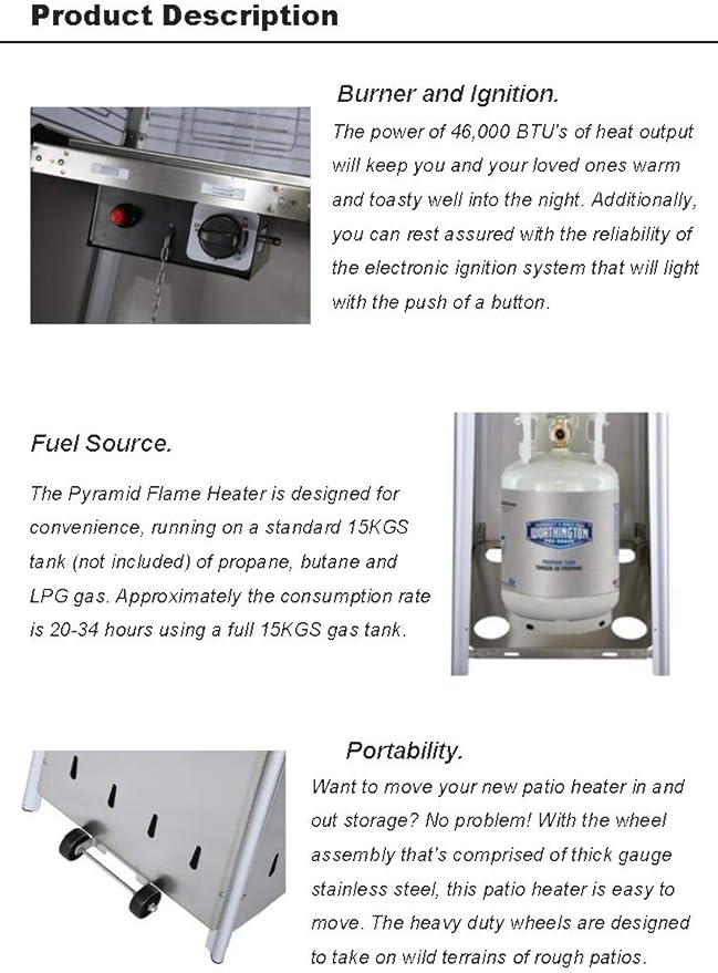 - BUILT-IN WHEELS FOR EASY MOVING — Integrated wheels make it easy to reposition the heater to different areas of your patio or yard.