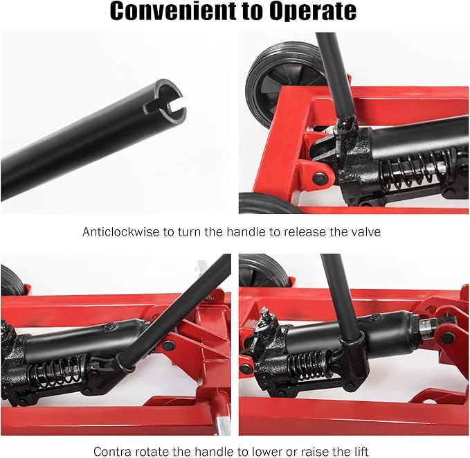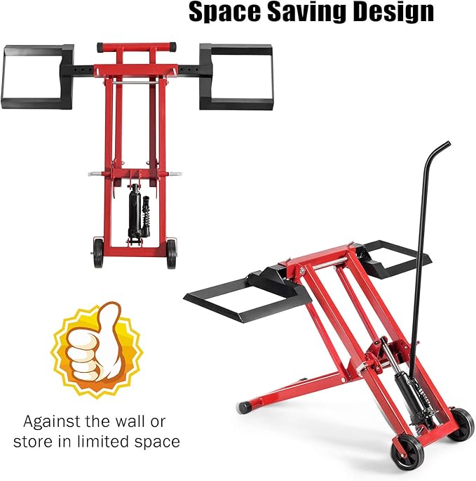 - 【Compact Volume & Foldable Design】With compact size and two wheels, the lift is easy to move to the place you want. Besides, when you are finished using it, it can be folded up to reduce the occupied space and facilitate storage. And all the parts are easy to assemble together.