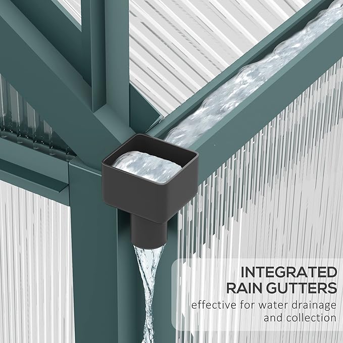 Outsunny 6' x 10' Greenhouse for Outdoors, Polycarbonate Greenhouse with Rain Gutter and Roof Vent, Aluminum Walk-in Green Houses for Outside for Patio Backyard Garden, Dark Green