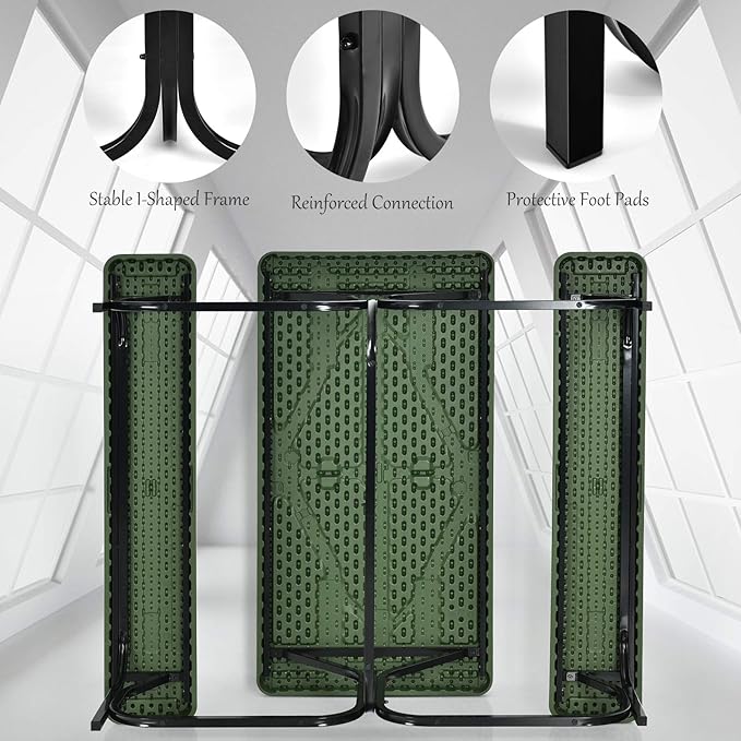 Giantex Picnic Table Bench Set Outdoor Camping All Weather Metal Base Yard Pool Dining Party Garden Patio Lawn Deck Large Camping Table (Green)