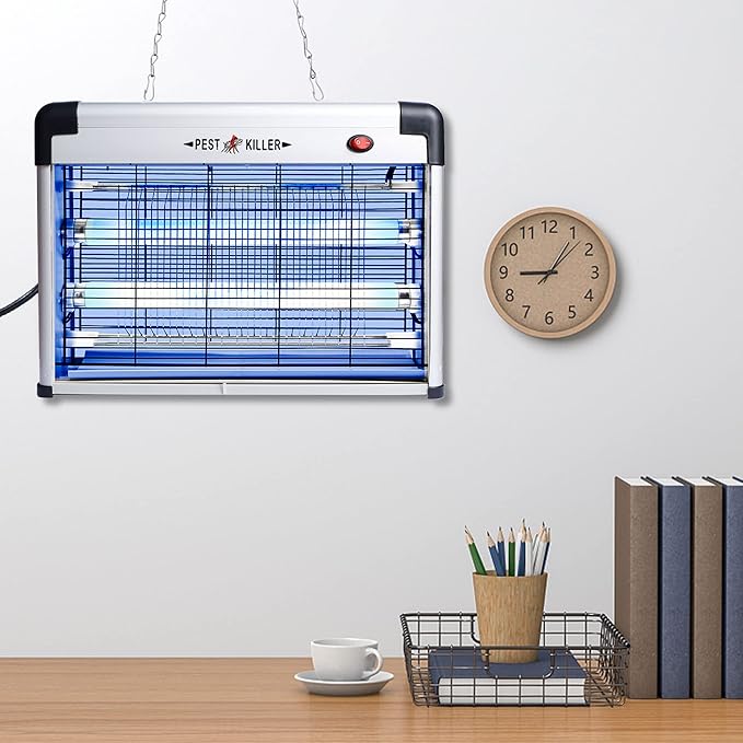 - HANGING OR STAND: Phosooy indoor insect zapper is designed thin and modern with non-clogging and non-rust mental grid. It can be placed on a flat surface, or hung with the accompanying chain attaching to the hooks on the top of the zapper.
