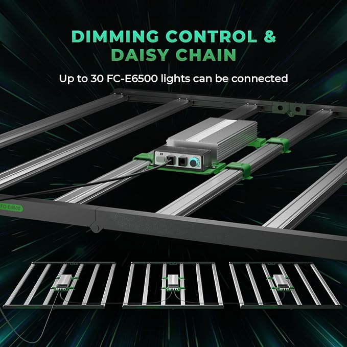 - INNOVATIVE PRECISE UNIFORM LIGHTING: New Version FC-E6500,The deep grey design exudes sophistication and a modern aesthetic.Without installation demand & dimmability enable the exact dynamic PPFD control over each of plant growing stages, FC-E6500 easy-to-install uniform adjustable PPFD levels throughout plant canopy, best for more uniform Density Buds. The bar-style design results in even light distribution that promotes uniform plant growth while avoiding hotspots in the center.
