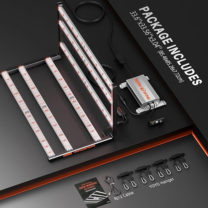 - 【GROW SMART WITH THE SPIDER FARMER APP】Take full control of your grow lights anytime, anywhere with the Spider Farmer App. Simply download the app (available on the Apple Store & Google Play) to unlock powerful features like custom light schedules, sunrise and sunset simulation, and remote brightness adjustments. Even while you're away on vacation, you can effortlessly manage your Spider Farmer SE grow light to ensure your plants thrive without missing a beat
