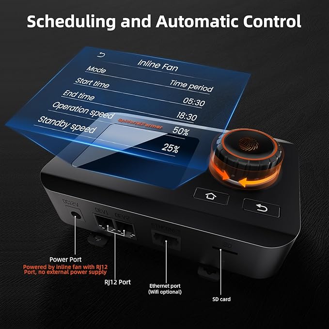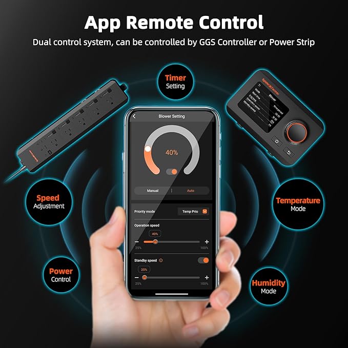 - ๐๐ฆ๐๐ซ๐ญ ๐๐ฉ๐ฉ ๐๐จ๐ง๐ญ๐ซ๐จ๐ฅ: Connect to the Spider Farmer App via WiFi to control the fan anytime, anywhere. Includes temperature and humidity sensor for climate monitoring and automated regulation
