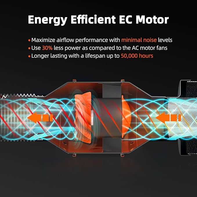 - ๐๐ฎ๐ข๐๐ญ ๐๐ง๐ ๐๐จ๐ฐ๐๐ซ๐๐ฎ๐ฅ: EC motor ensures energy efficiency: 27 watts, 205 CFM airflow, 26.8 dB noise. Lightweight ABS blades increase airflow by 40%. ETL/FCC listed, safe to use