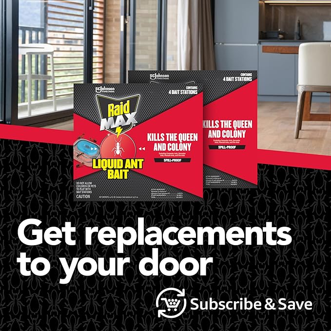 Raid Max Liquid Ant Bait; Kills Ants Where They Breed, for Indoor and Outdoor Use; 4 Bait Stations