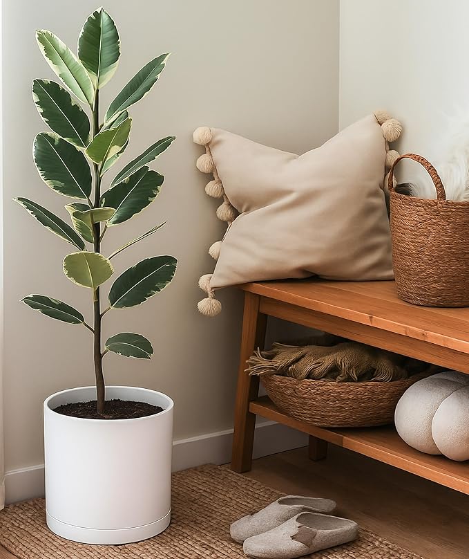 D'vine Dev 10 Inch Plastic Planter Pots for Plant Pot with Drainage Hole and Seamless Saucers, White Color, 74-X-A-2