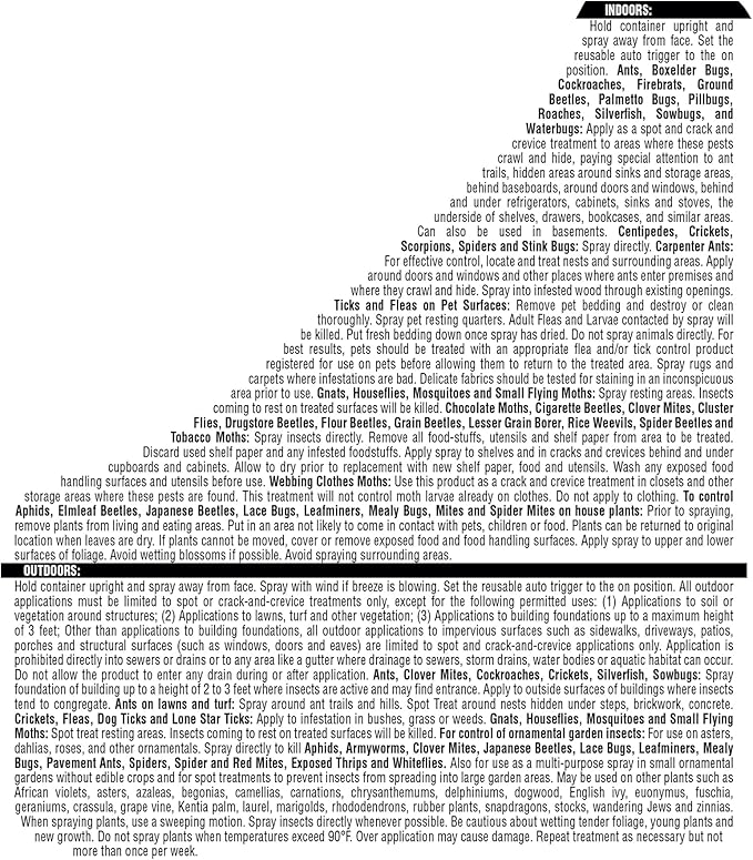- For both indoor and outdoor use β it's a roach killer, ant killer, mosquito killer, tick killer and spider killer that is also effective against many other bugs, all in one spray