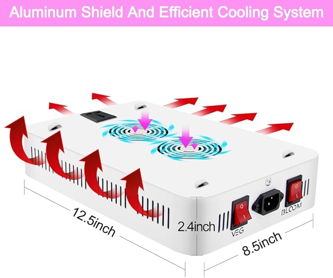 - ๐ฟ Upgraded & Efficient Cooling System: Our plant grow lamp has two built-in high-speed silent cooling fans,upgraded aluminum radiator and temperature controller,forming a powerful cooling system. Even when working for a long time,the LED grow light can be kept below 50ยฐF. Good heat dissipation ensures the long life of the grow lamp.(lifespan;50000 hours)