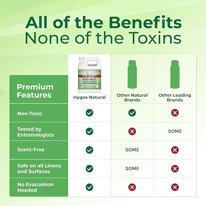 - Odorless & stain-free: Hygea Natural's unique formula can be used on any water-friendly surface including upholstery, mattresses, bed linens, clothing, floors, walls, etc. Spray a light mist of the portable bed bug spray. It wonโt leave a residue.