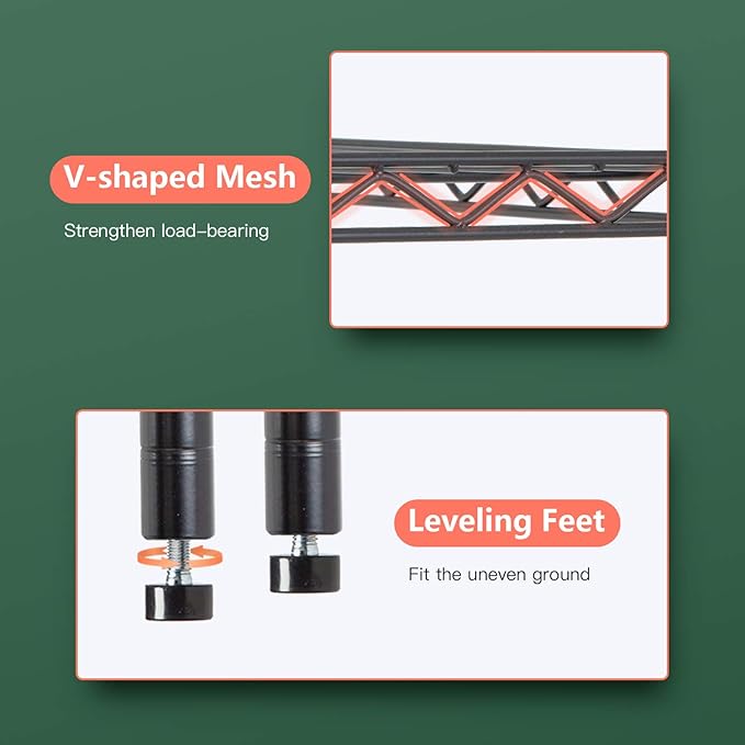 - ✔【EASY TO ASSEMBLE】: The storage shelves is easy to assemble. This wire shelf structure is very simple, No tools required to assemble it. The wire shelving unit is simple to assemble, You only need to spend 15min to install.