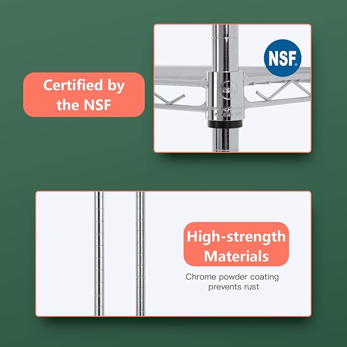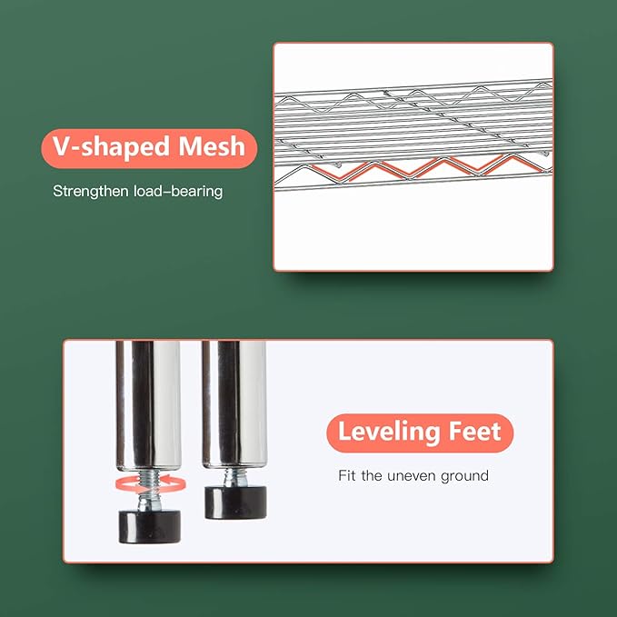 - ✔【EASY TO ASSEMBLE】: The storage shelves is easy to assemble. This wire shelf structure is very simple, No tools required to assemble it. The wire shelving unit is simple to assemble, You only need to spend 15min to install.