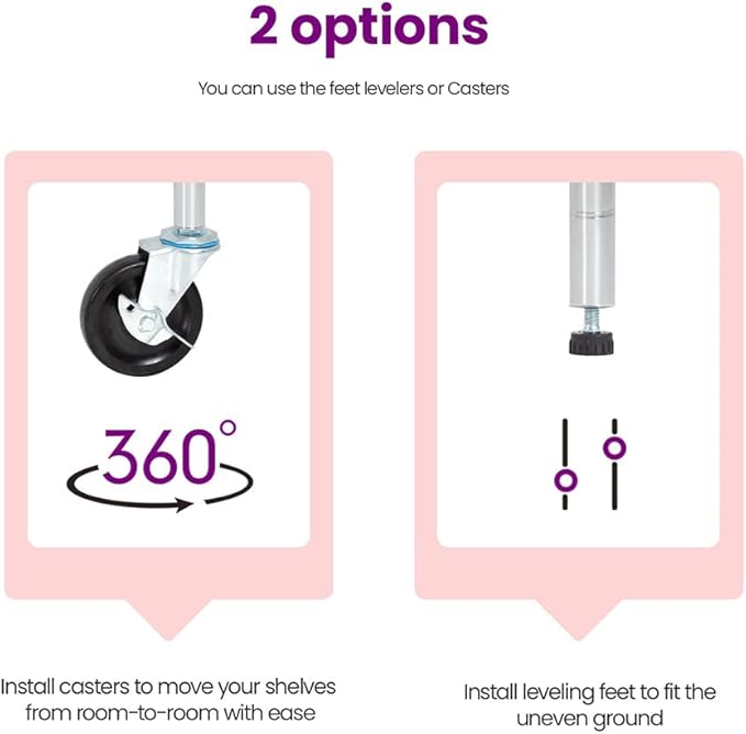 - ADJUSTABLE DESIGN FOR FLEXIBILITY: Customize shelf spacing to fit tall, bulky, or oddly shaped items, perfect for adapting your wire shelf to evolving storage and organization needs.