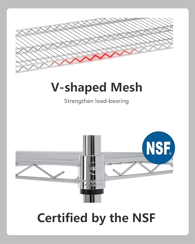 - ✔【Adjustable Height】 Enjoy a completely customizable metal commercial shelving unit. The build allows for height adjustments - giving you the freedom to adjust accordingly to your needs. Comes with easy adjustable clips to secure and stabilize each shelf. The multi-purpose shelf rack is perfect for garage shelving, kitchen storage, pantry shelving, and more.
