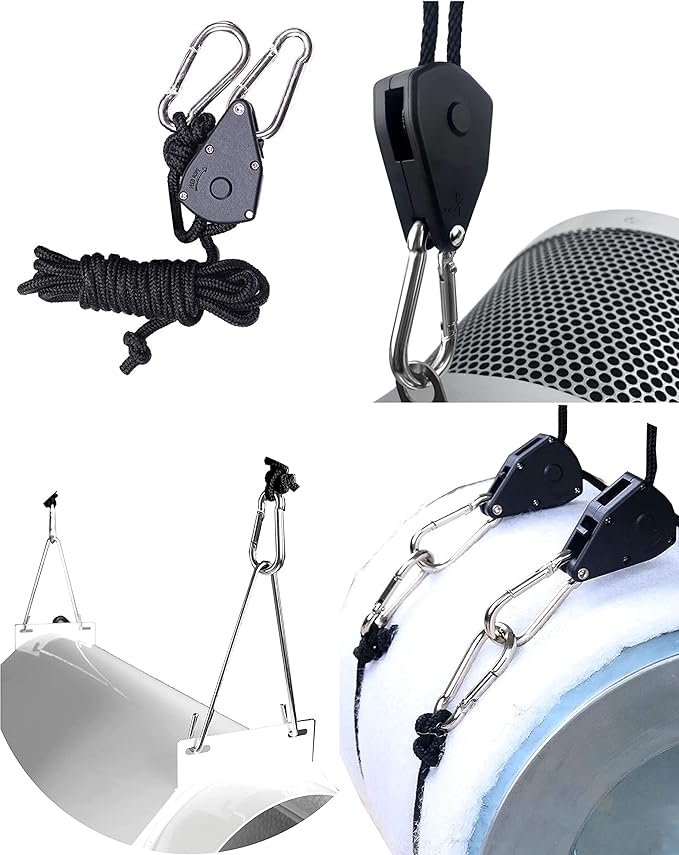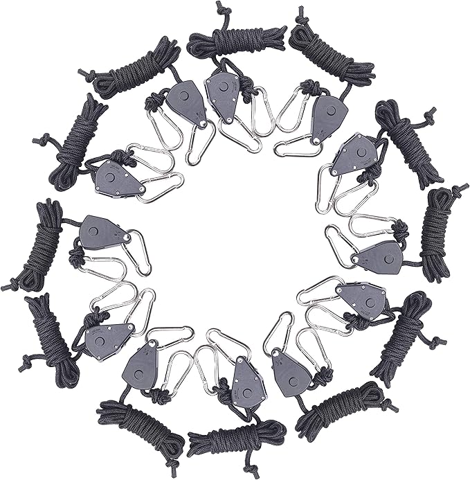 6 Pair of 1/8 inch Adjustable Rope Hanger Heavy Duty for Grow Light Rope Hangers Loose-Proof Design Light Fixture Hangers (12Pcs)