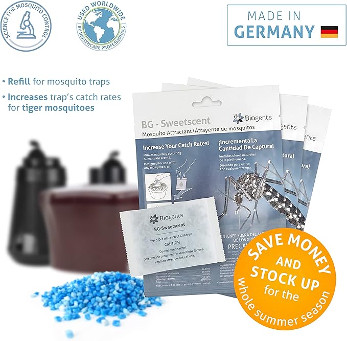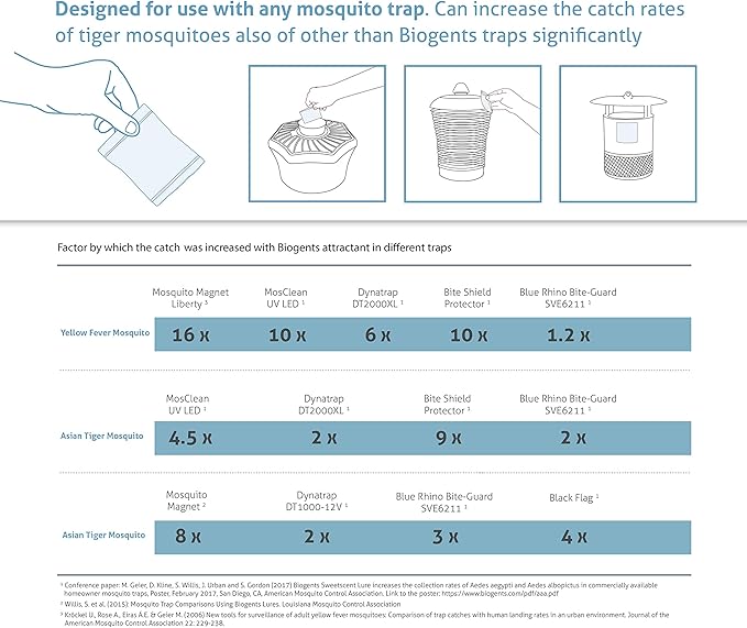 - Effective Across All Mosquito Species: Whether you're dealing with common mosquitoes, the dengue-carrying Aedes, or the Asian tiger mosquito, the BioGents Sweetscent attractant covers all bases. This versatile Asian tiger mosquito attractant helps combat mosquito-borne diseases, providing peace of mind with its broad-spectrum effectiveness.