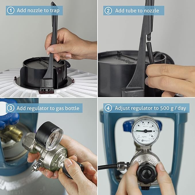- CONTENTS: This package contains one pressure reducing regulator, one CO2 emitter nozzle, and one CO2 tube (5 m) for the BG-Mosquitaire (sold separately), making it effective against all biting mosquitoes. CO2 gas tank is not included.