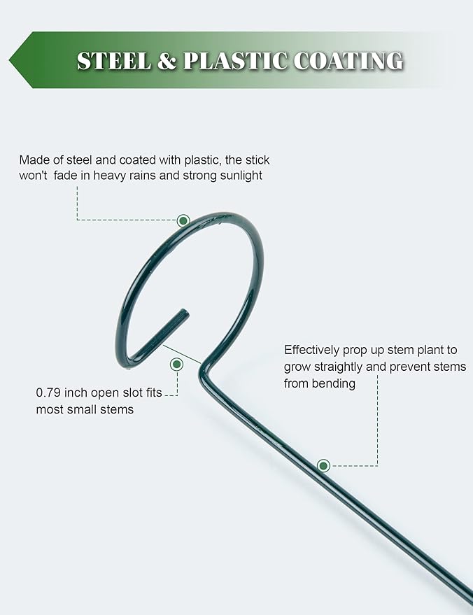 - Plant Stakes With Rings: The uniquely designed support ring of the flower stakes can well secure the stems of the plant. The plant support stake will not affect the growth of plant stems. With this plant stake plants will not be injured by binding.
