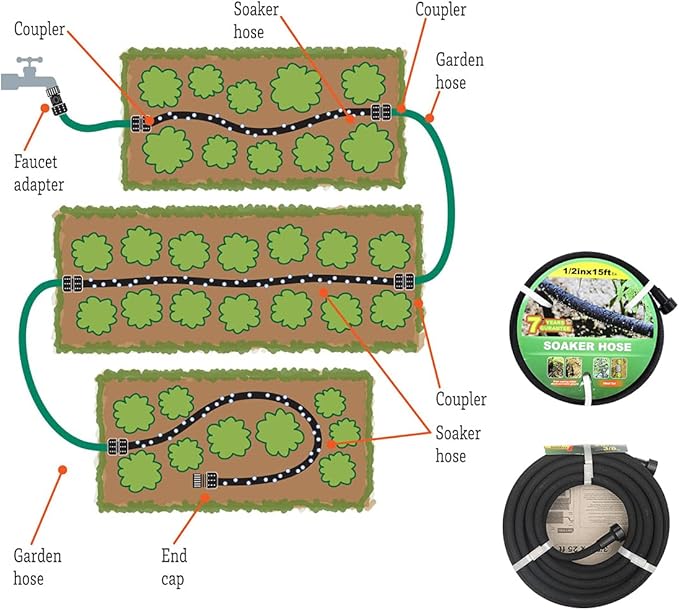 - Perfect Delivery of Water - Save up to 70% water. Evenly waters from beginning to end slowly, steady release at the soil line. This ensures that water is not wasted. The slow release allows the soil around plant roots to gradually absorb the water. And the proximity of the hose to soil means that very little if any is lost to evaporation.Liquid fertilizer can be used to distribute nutrients to planting through the soaker hose.