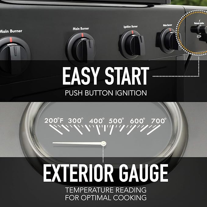 - Electronic Ignition – Quick and reliable start-up with the push of a button ensures a hassle-free grilling experience.