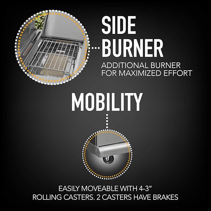- 4 CASTER WHEELS FOR EASY MOBILITY – Who needs muscles when you've got wheels? The Kenmore 4-Burner All Stainless Steel Gas Grill with Searing Side Burner features four smooth-rolling wheels, including two locking wheels for added security and stability. No heavy lifting required! Easily transport and secure the grill wherever you need it—perfect for backyard parties or tailgating adventures.