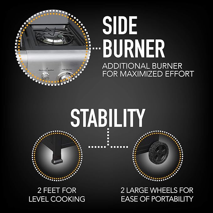 - Side Burner for Added Versatility – The convenient side burner allows you to prepare sauces, soups, and side dishes simultaneously, expanding your cooking options.