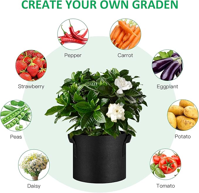- Pack size: 12 packs,7 gallons black grow bag with handle, 7 gallon pot size: 13"diameter x 12" height