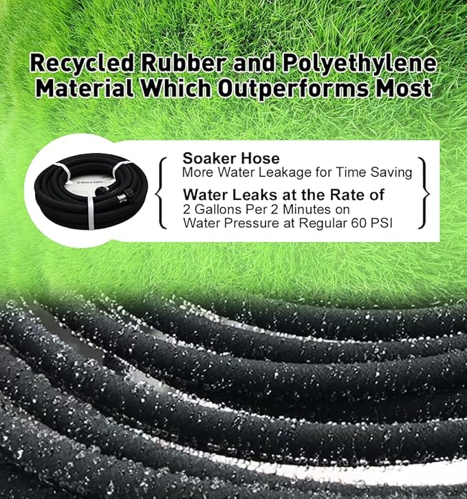 - LIGHTWEIGHT AND DURANLE:The lightweight soaker hose easy to maneuver around plants, so you can maintain even the most ambitious landscaping project without dragging a heavy garden hose around.