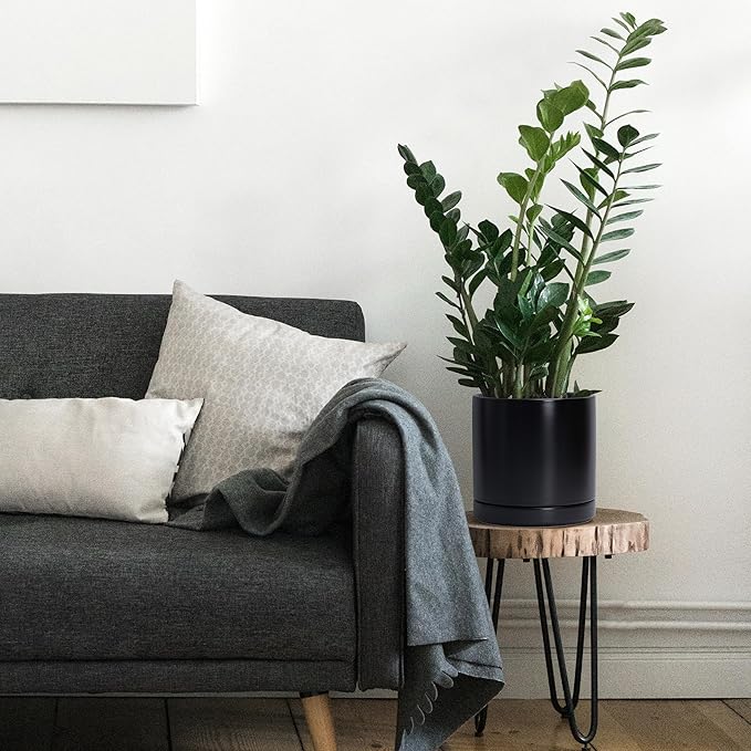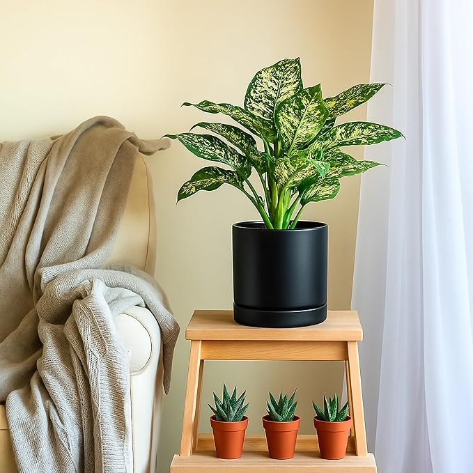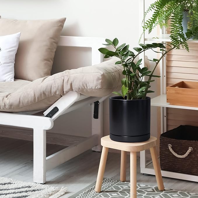 D'vine Dev Set of 2 Plants Pots, 8.2 Inch Ceramic Planter Pot for Plants with Drainage Hole and Saucer, Black, 94-V-D-2